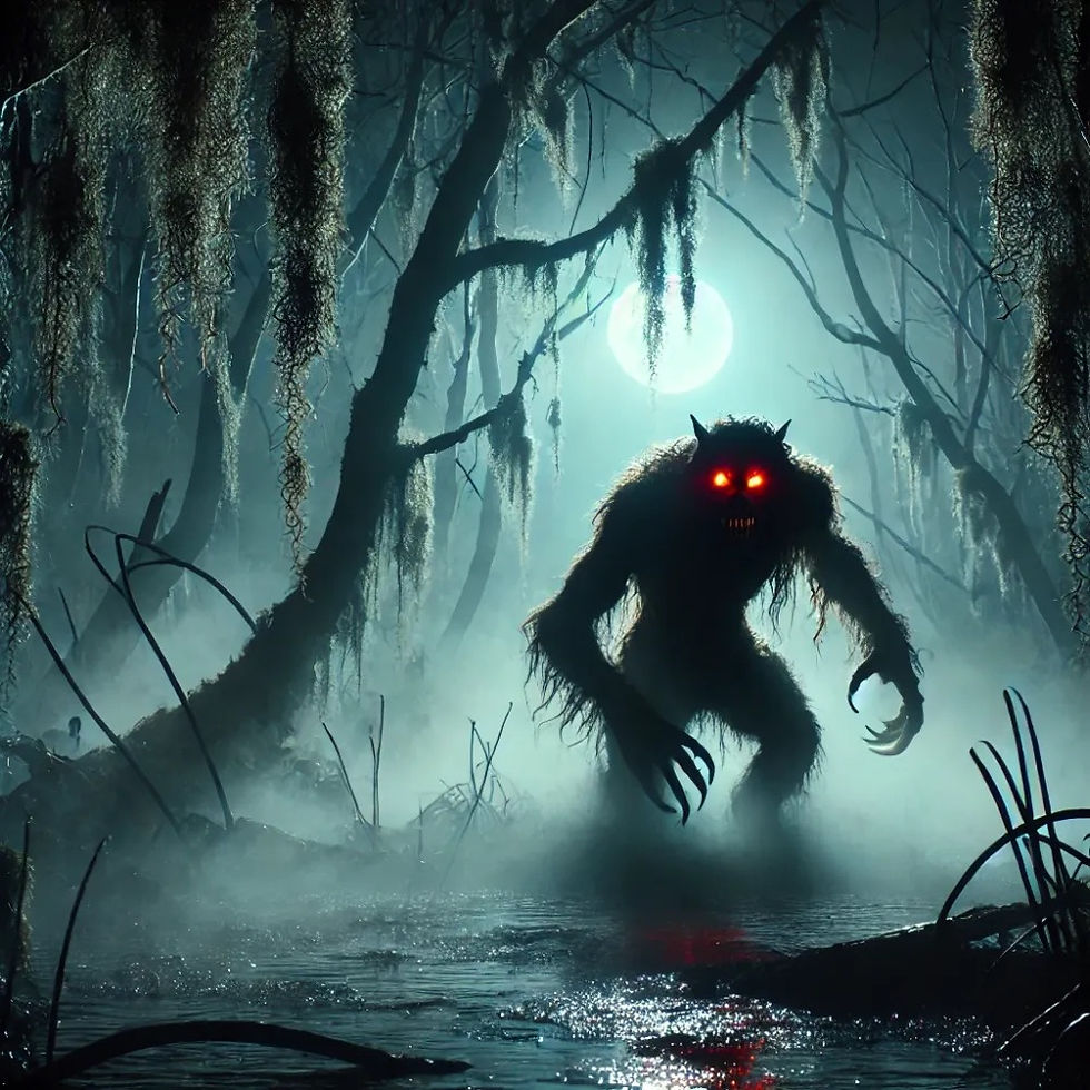 In Acadiana, the Rougarou isn’t just a monster — it’s a moral story. According to Cajun lore, the creature is said to be a human cursed to transform into a wolf-like beast with glowing red eyes and a thirst for blood. Some tales say the curse lasts 101 days, and only passes when the Rougarou draws another person’s blood — turning them into the next monster.